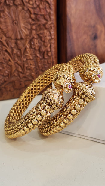 Enhance your style with our Brass Temple Bangle. These stunning sets are carefully crafted to bring timeless elegance to your look. Affordable yet luxurious, they're perfect for any occasion, making you shine bright and stand out effortlessly.