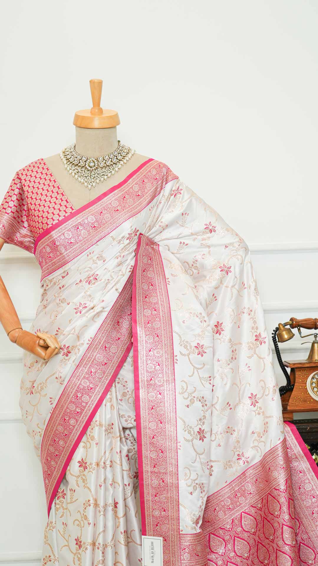 Pair it with statement jewellery and a complementing blouse to complete a look that blends classic tradition with contemporary charm.