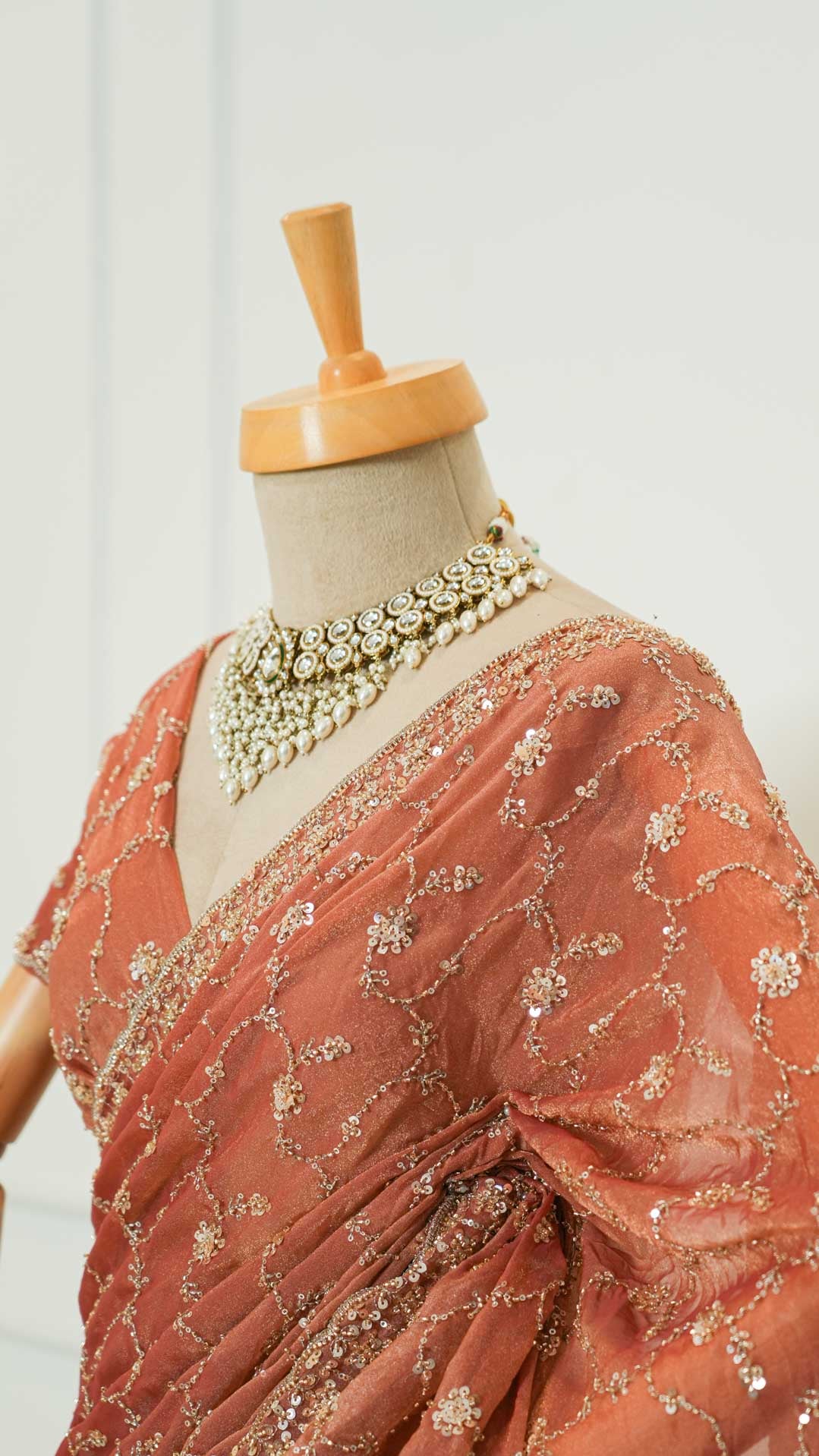 Pair it with statement jewellery and a complementing blouse to complete a look that blends classic tradition with contemporary charm.
