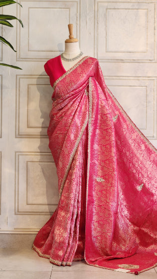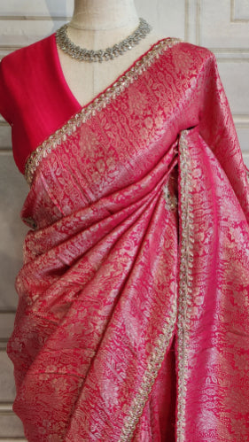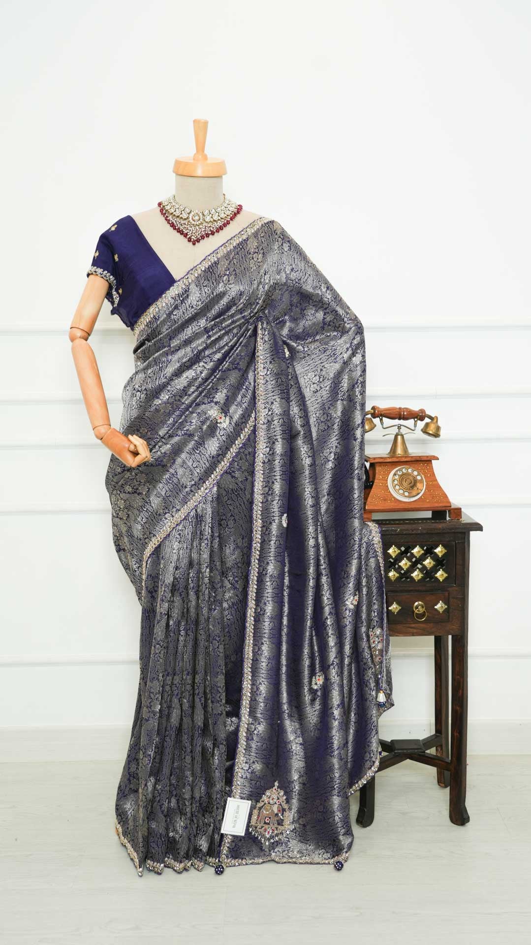 Handwork Kanjivaram Saree Manya is a true celebration of luxury and heritage, crafted for those who appreciate the finest artistry. Meticulously handwoven by master artisans, this exquisite saree showcases rich silk, intricate handwork, and timeless Kanjivaram motifs that reflect regal elegance. Every detail, from the lustrous texture to the elaborate craftsmanship, speaks of exclusivity and refinement, making Manya a statement of prestige. Designed for grand occasions and treasured moments, this premium saree is not just an attire, but an heirloom that embodies sophistication, tradition, and unmatched opulence.