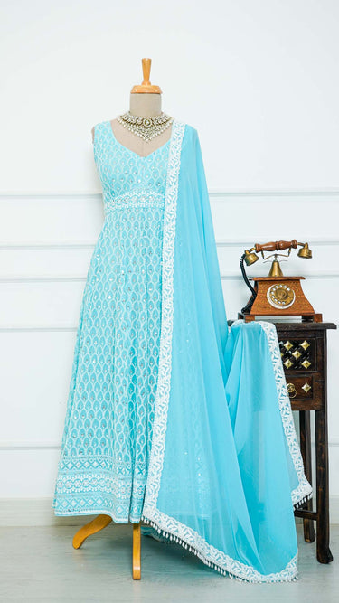 Sky Motif Anarkali with Chudidar and Shawl