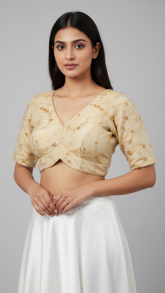 Gold Hand Embroidered Half Sleeves Cosmos Blouse