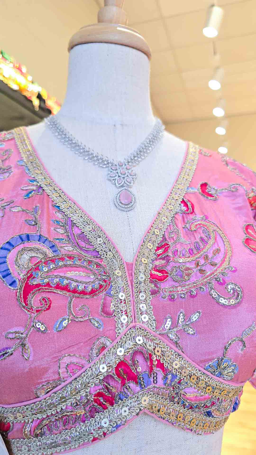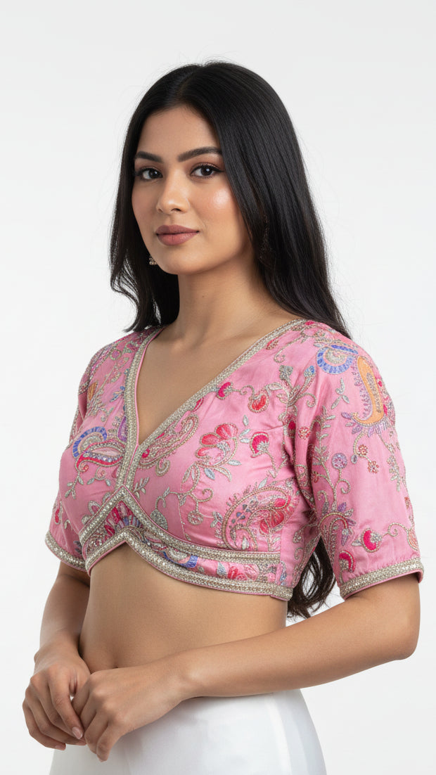 Multicolor Half Sleeve Paisley Blouse in Pink