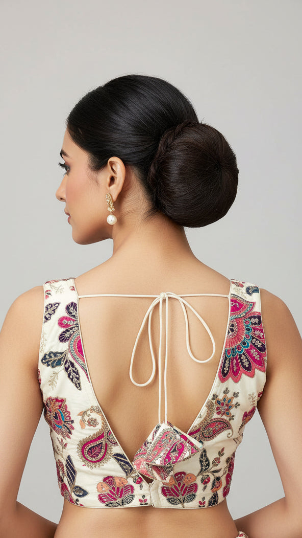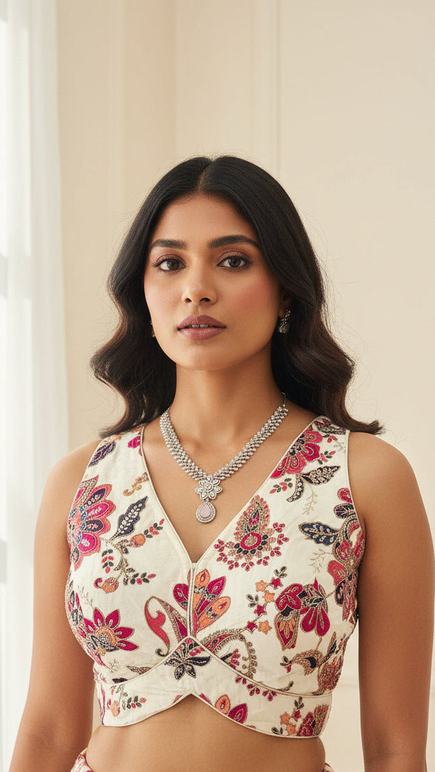 Multicolor Sleeveless Paisley Cream Blouse