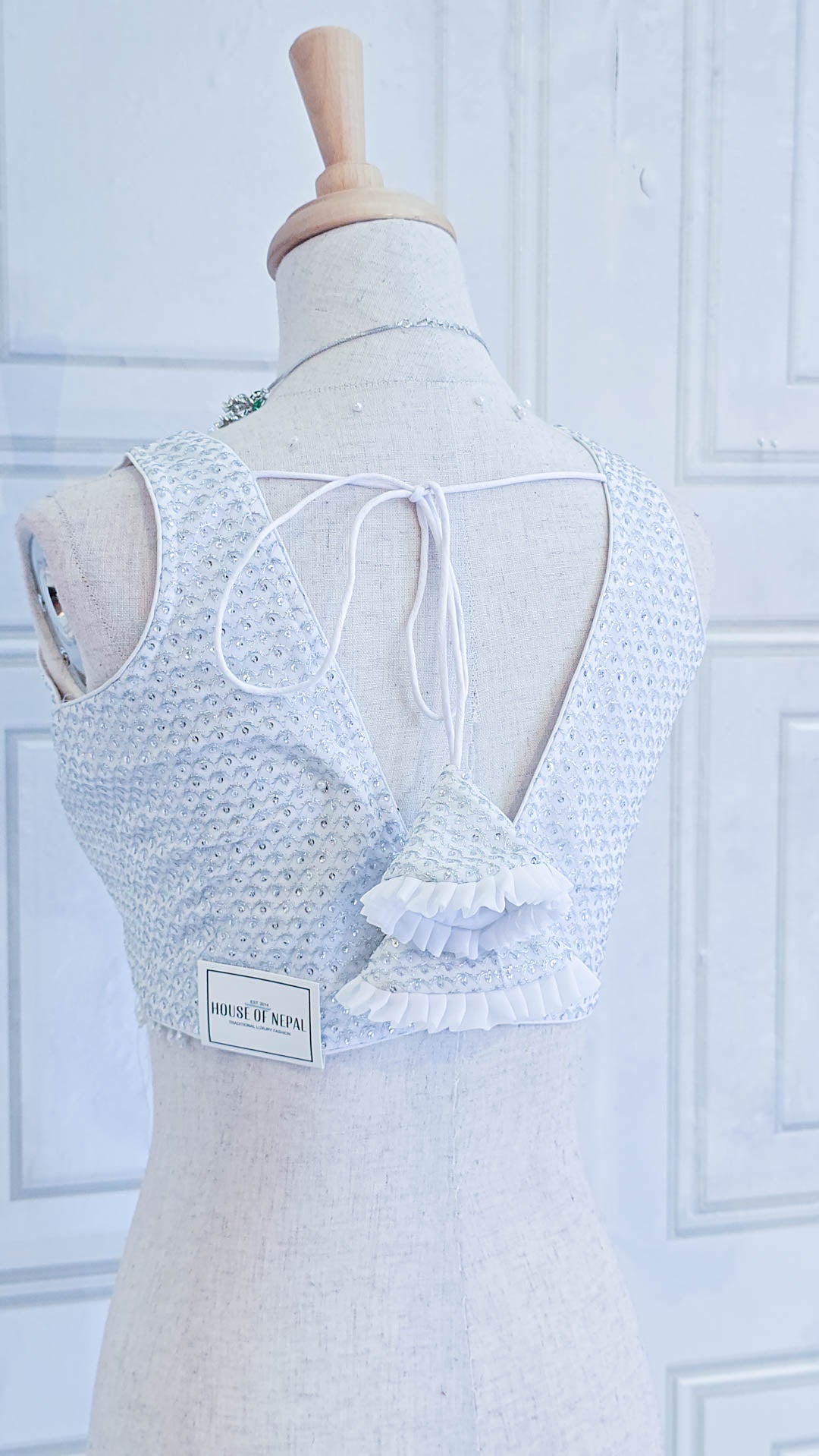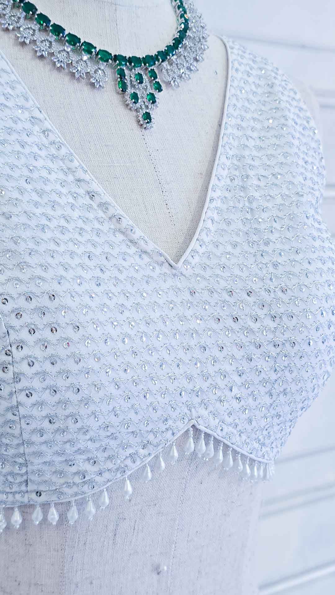 White & Silver Sleeveless Thread and Sequin Blouse