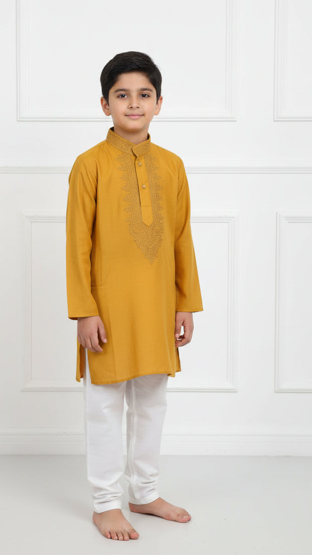 Silk Cotton Handembroidered Kurta Pajama for Boys