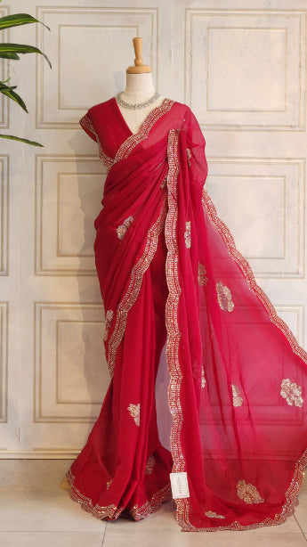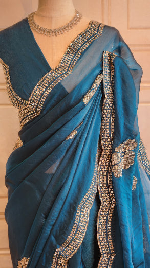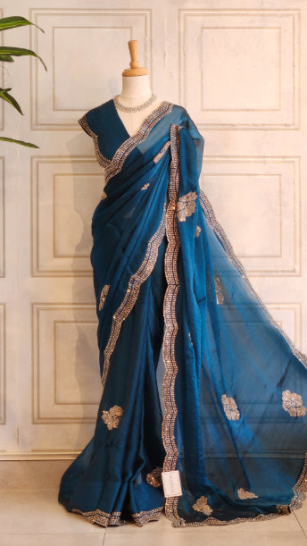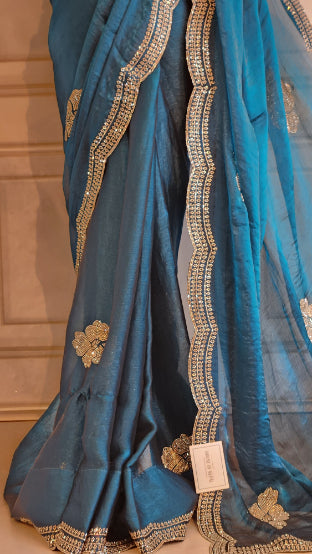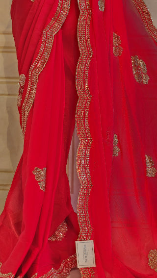 Shining Chiffon Saree with Floral Swarovski Work