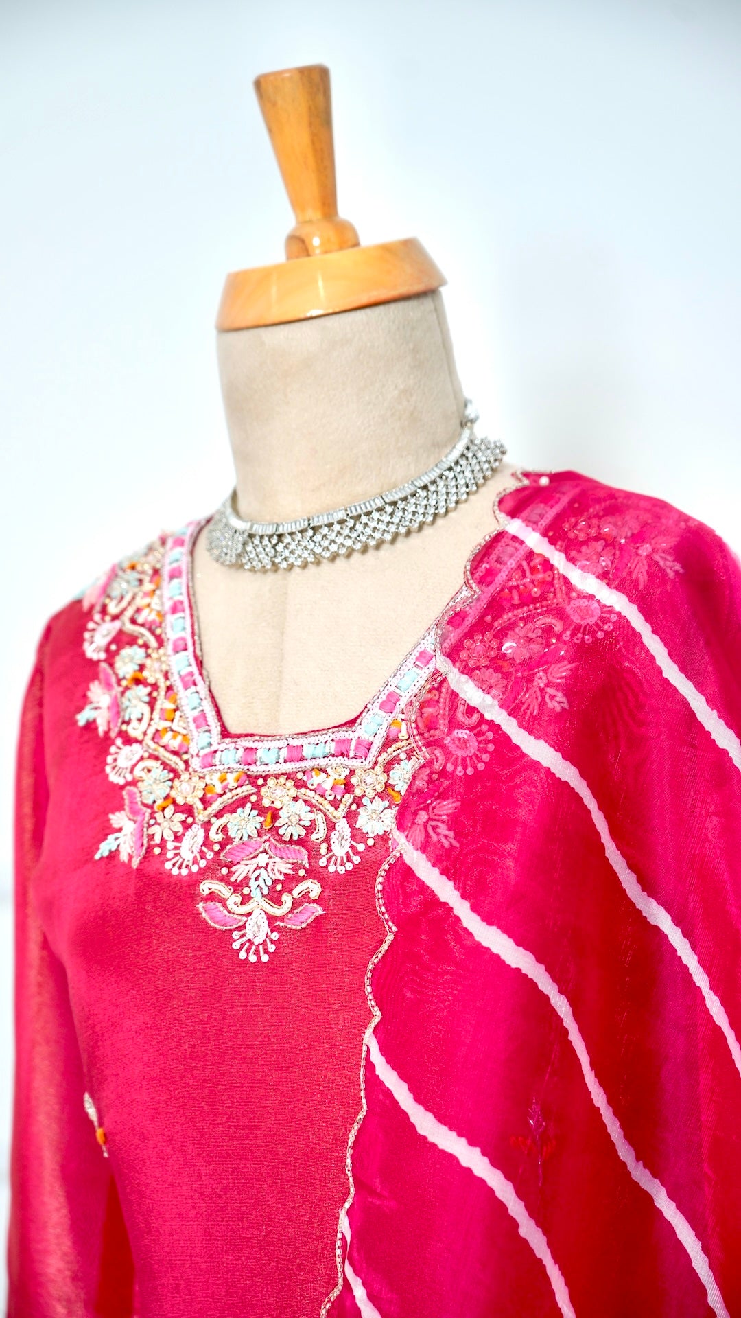 This Women's Handwork Kurta Set in Pink combines traditional craftsmanship with everyday comfort. The delicate handwork adds a unique touch, making it perfect for casual outings or relaxed gatherings. Its soft pink shade offers a fresh, feminine look that pairs effortlessly with your favorite accessories. Enjoy a blend of style and ease in this beautifully crafted kurta set.