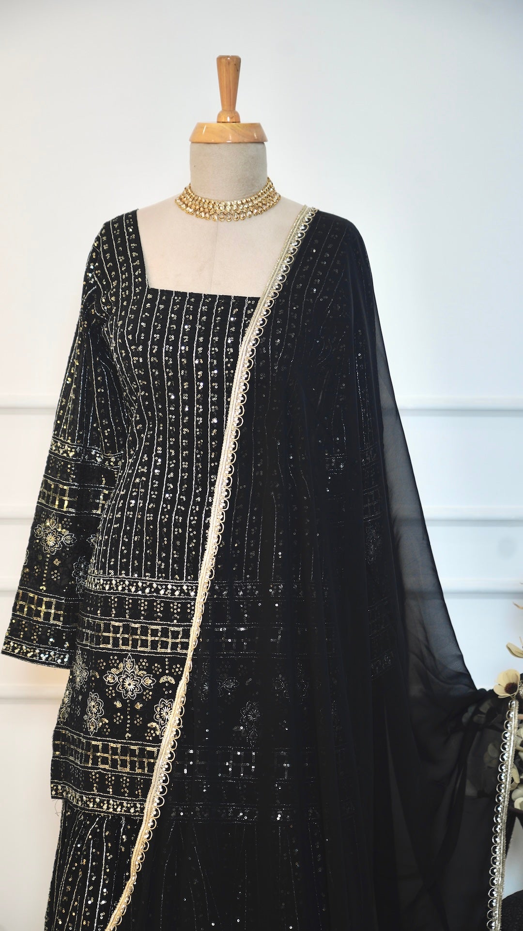 Elevate your style with our exquisite Boutique Garara Suit. Immerse yourself in intricate sophisticated design, and a fusion of tradition and contemporary elegance.