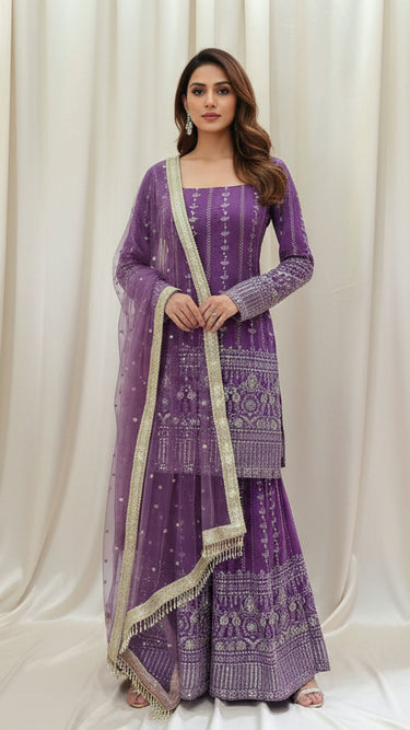 Elevate your style with our exquisite Boutique Garara Suit. Immerse yourself in intricate sophisticated design, and a fusion of tradition and contemporary elegance.
