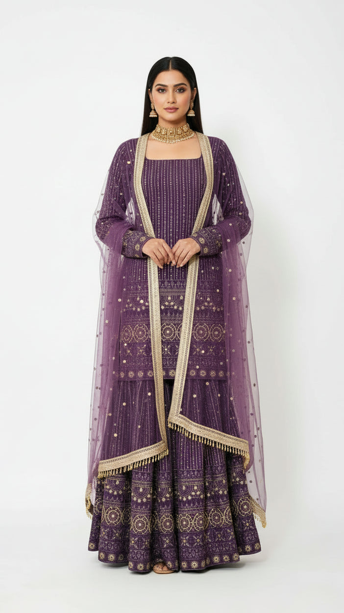Elevate your style with our exquisite Boutique Garara Suit. Immerse yourself in intricate sophisticated design, and a fusion of tradition and contemporary elegance.