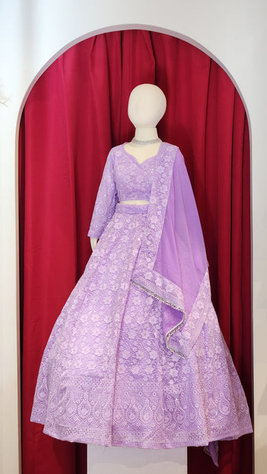 Girls Lavender Chikankari Lehenga with Boutique Blouse and Shawl