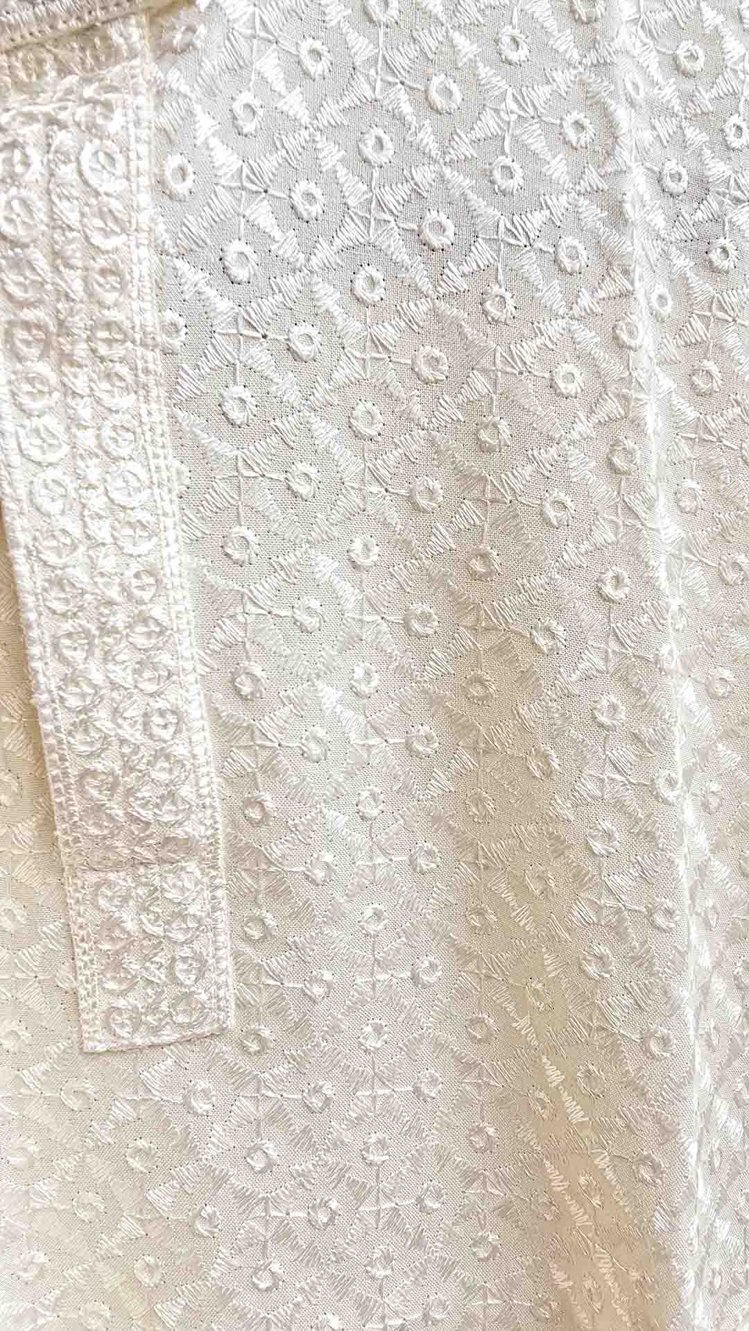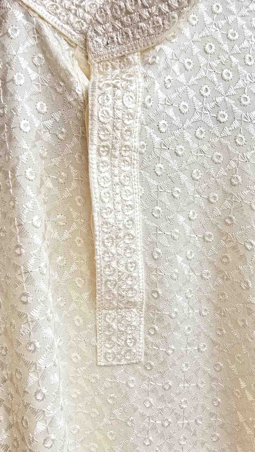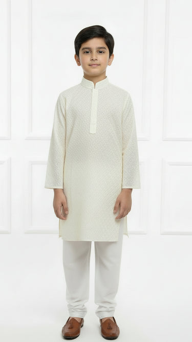 Cream Rayon Chikankari Kurta Pajama for Boys