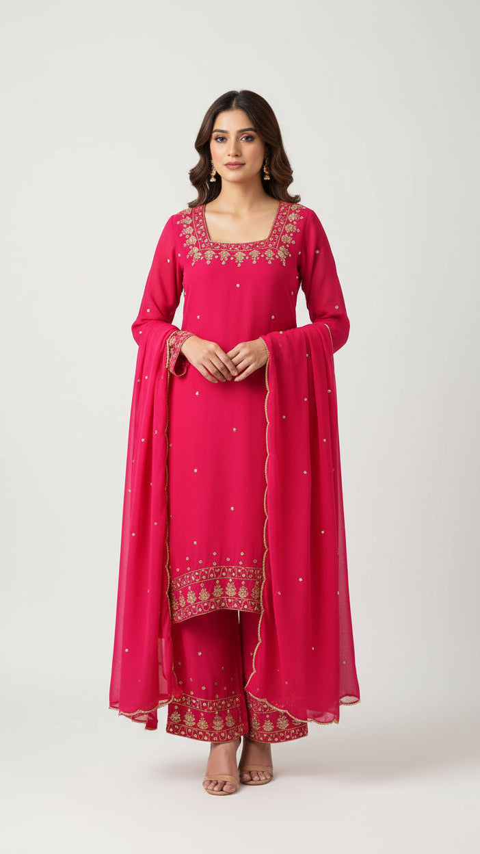 Rani Pink Handwork Kurta Set in Georgette