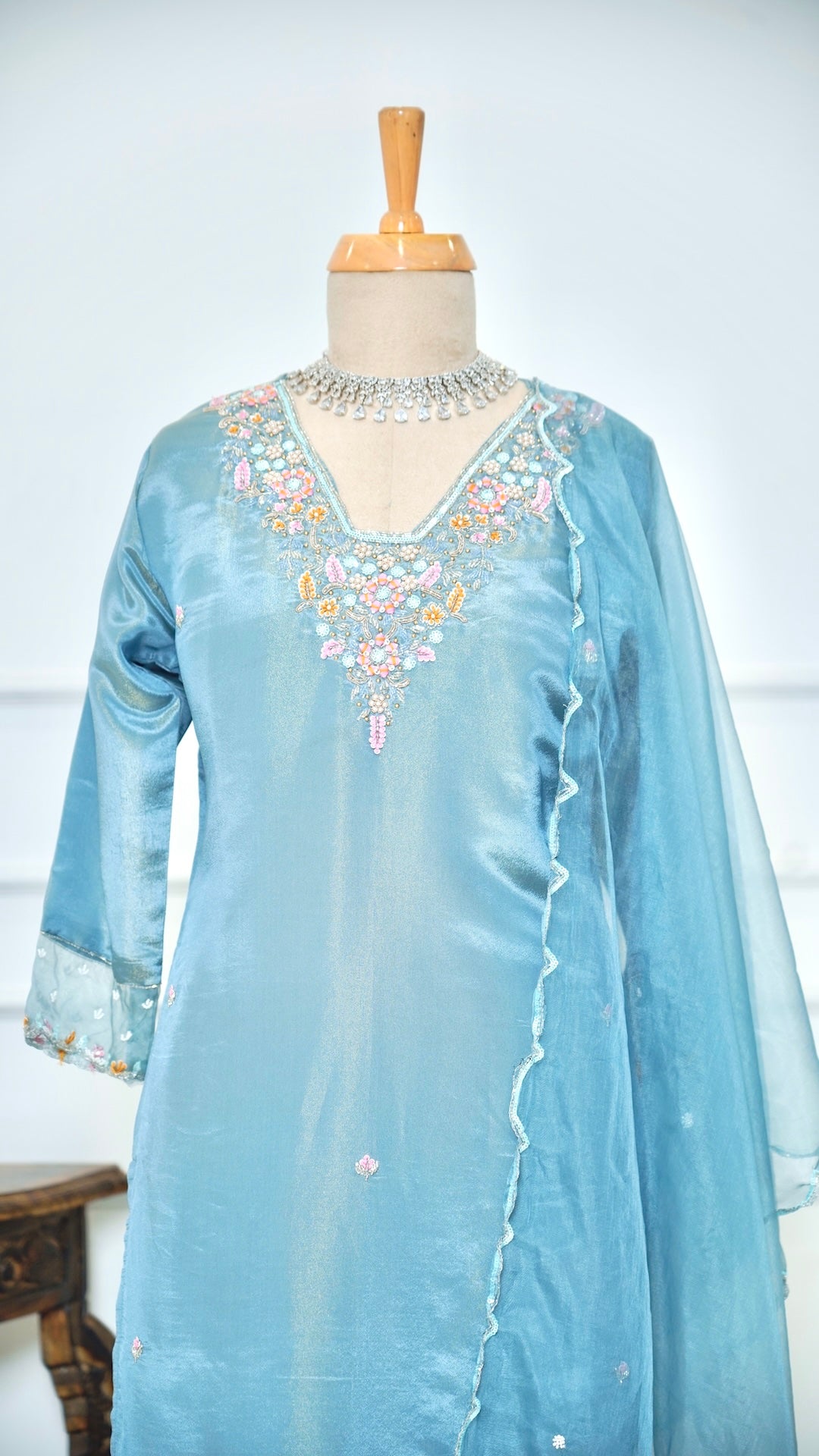 Sage Blue Handwork Kurta Set