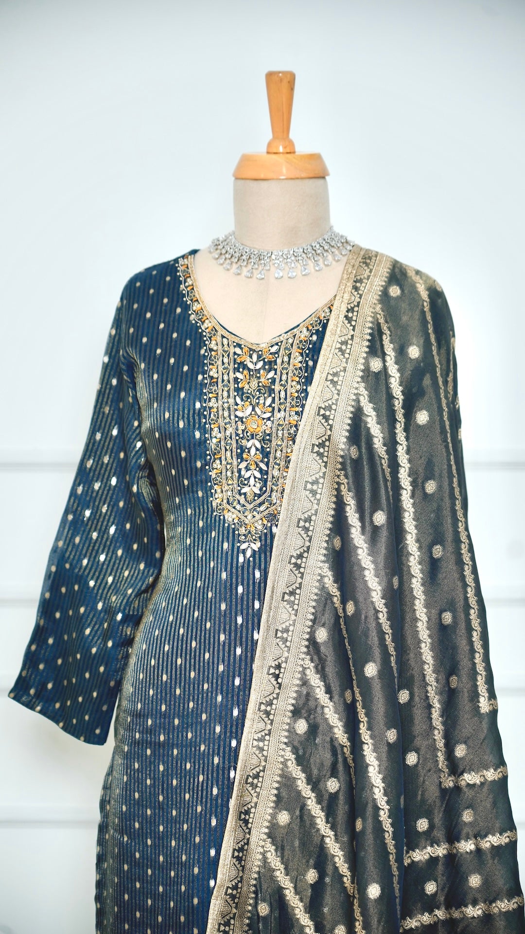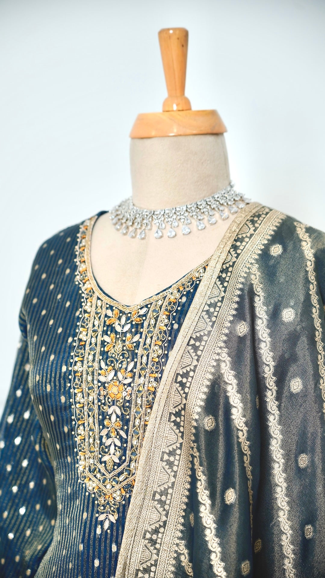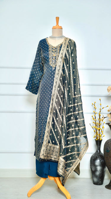 Teal Handwork Kurta Set with Banarasi Shawl