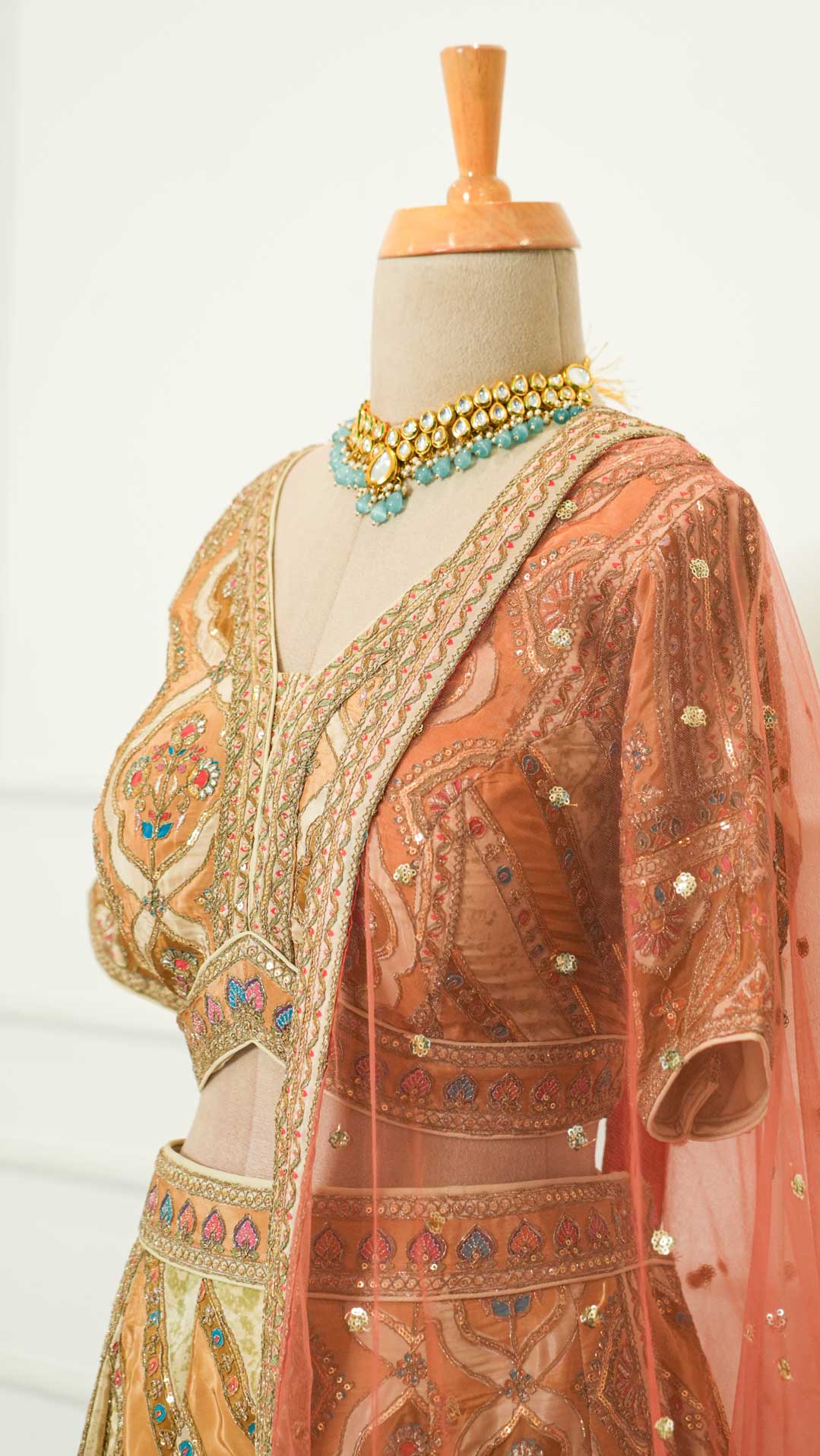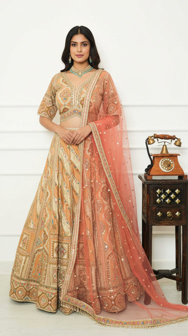 Whether it's a festive celebration, a sangeet, mehendi or haldi event, or a luxurious evening affair, this lehenga exudes charm and poise, making you the center of attention. A perfect blend of traditional craftsmanship and contemporary beauty, it promises a striking look that's both bold and graceful. This lehenga offers a stunning silhouette without compromising comfort.
