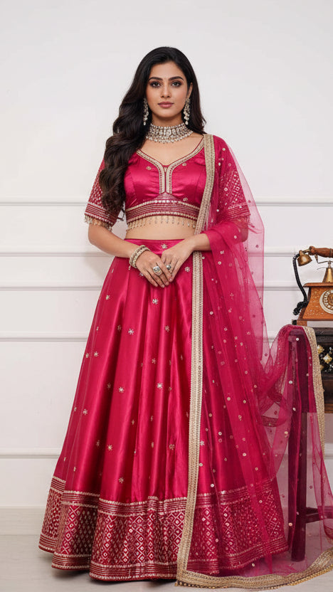 Rani Pink Silk Lehenga with Mirrorwork