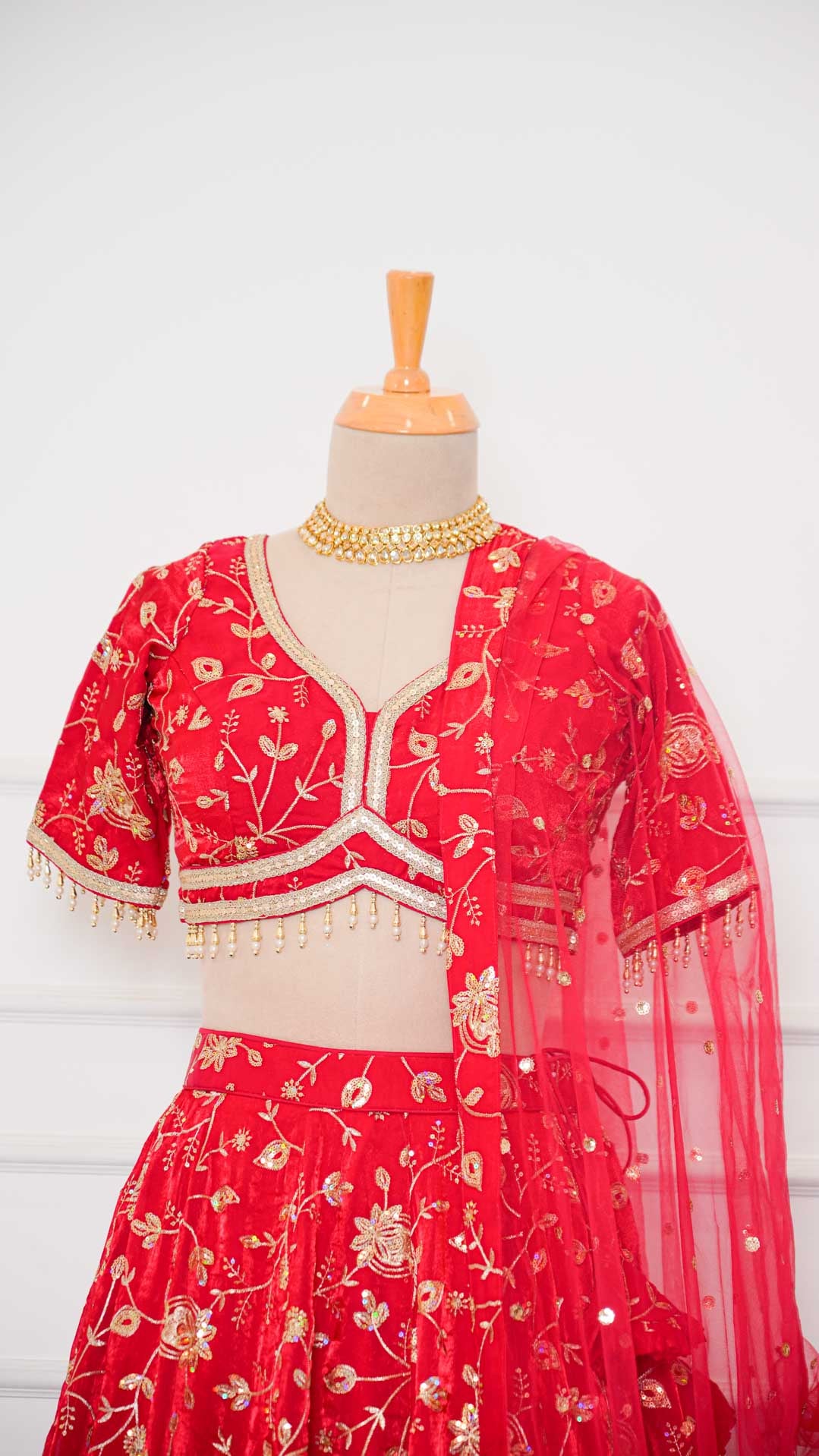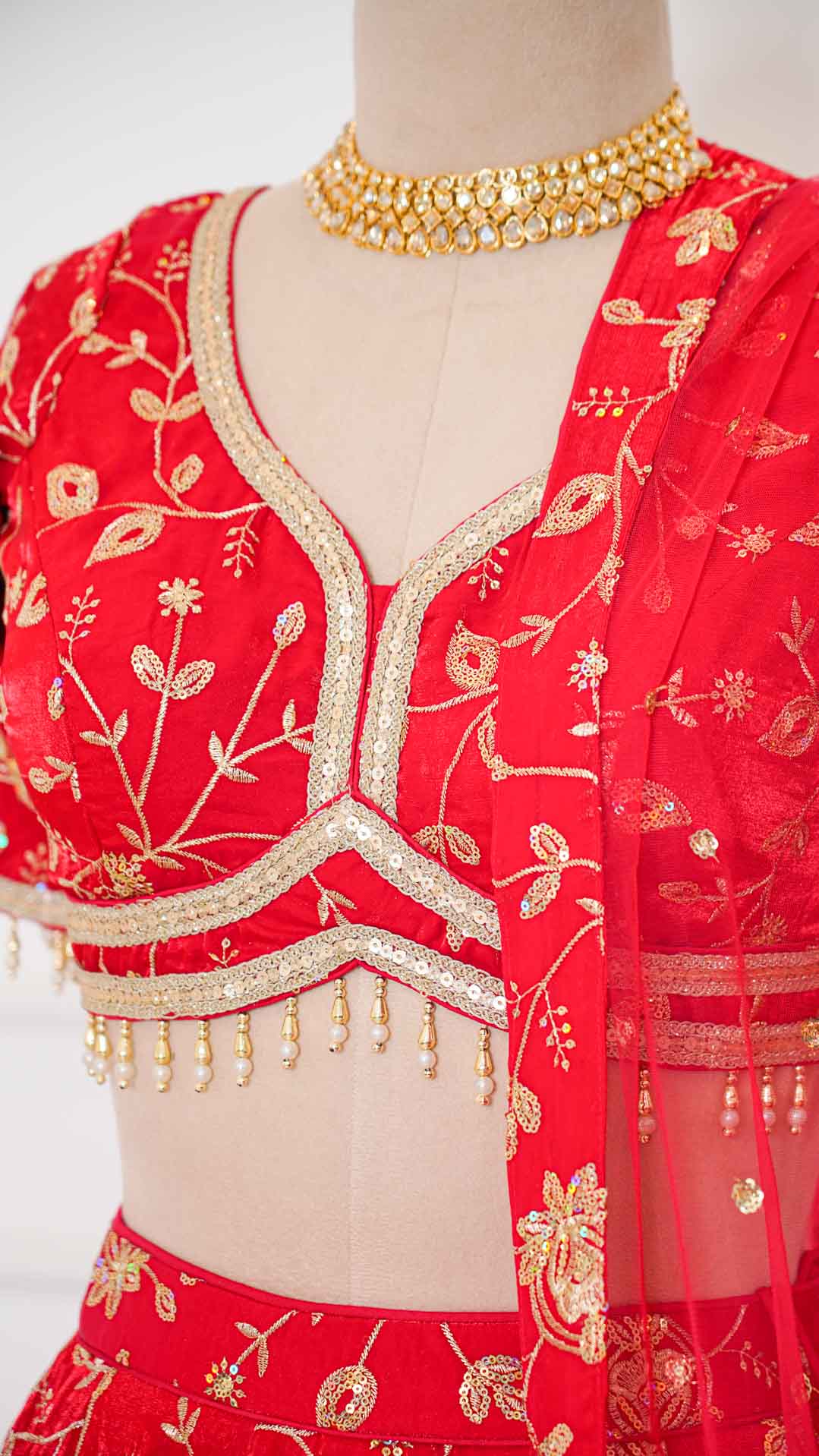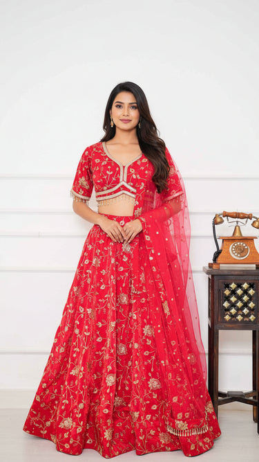 Red Jaal Sequin Embroidered Lehenga Set