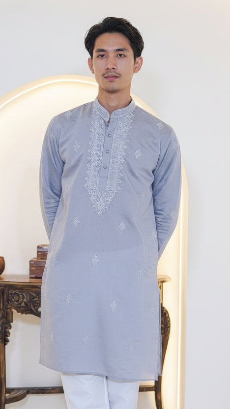 Silk Cotton Kurta for Men with Hand Embroidery
