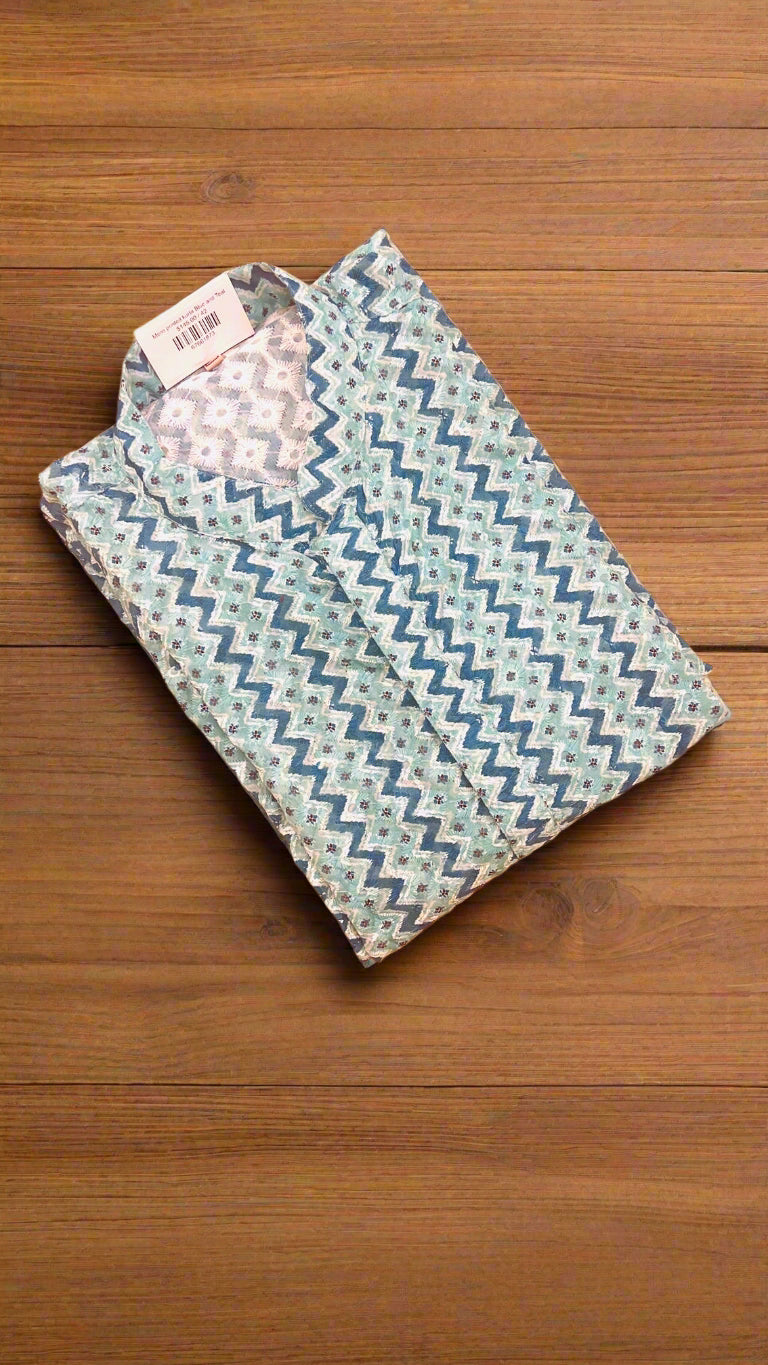 Mens printed kurta Blue and Teal