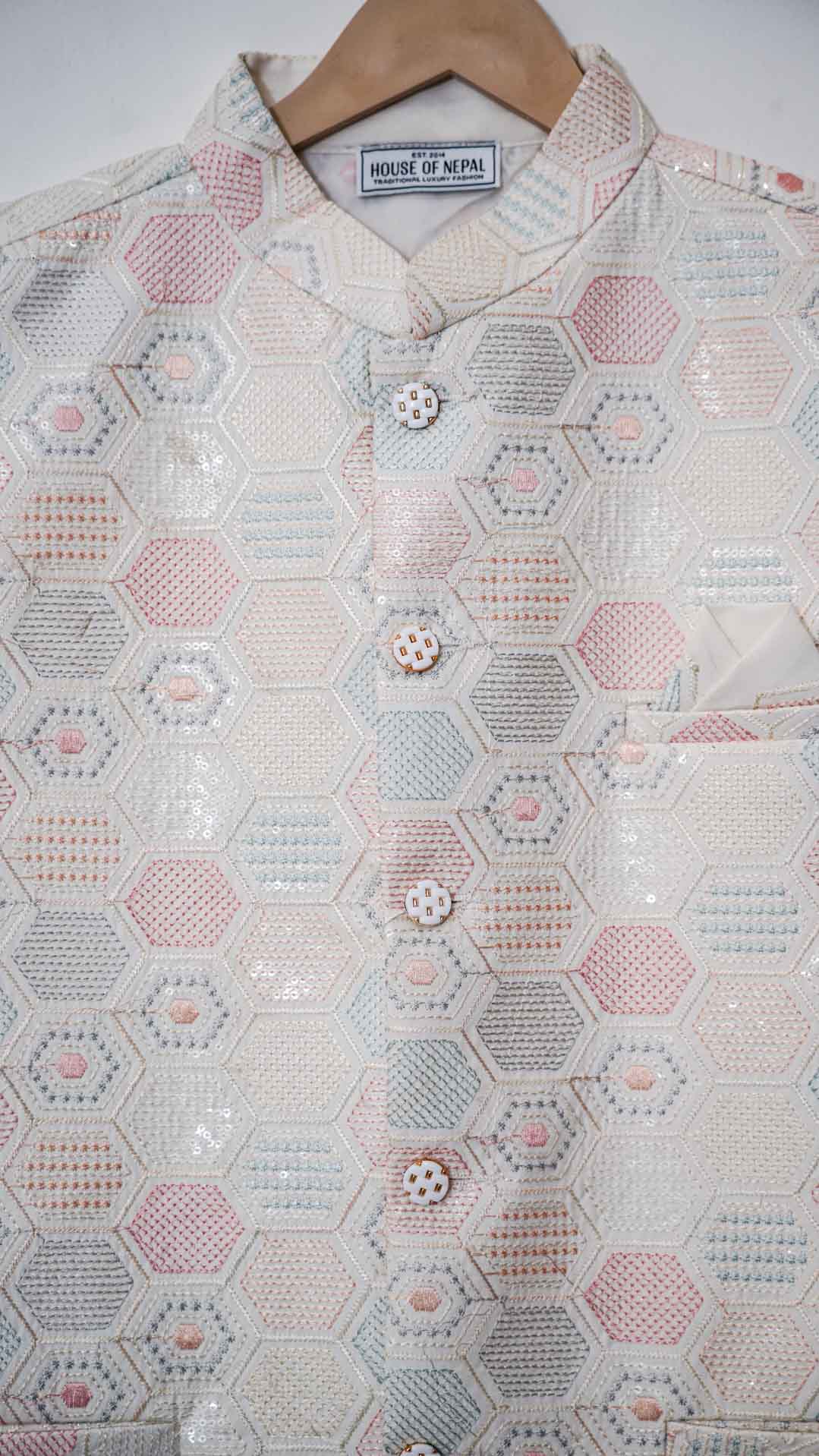 Malai Silk Geometric Pastel Nehru Jacket