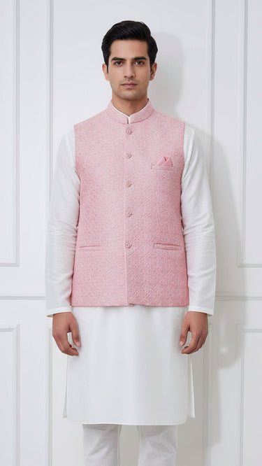 Impeccably tailored Nehru Jacket also known as Modi coat features a stand-up collar and intricate buttons. Exquisite zari and sequin embroidery elevates this piece to stand out. Perfect for weddings, cultural events, or formal occasions. Pair with a kurta or modern separates.
