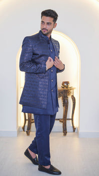 Save 44% ![Jacquard Indo Western Set in Navy]()