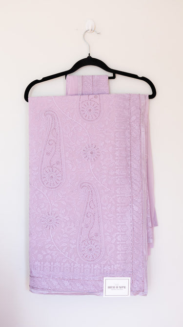 Immerse yourself in luxury with our Georgette Saree, featuring exquisite Kashmiri weave threadwork and sparkling Swarovski embellishments. The lightweight fabric drapes beautifully, while the intricate threadwork and dazzling Swarovski details add a touch of glamour. Perfect for special occasions, this saree combines classic artistry with modern sophistication.