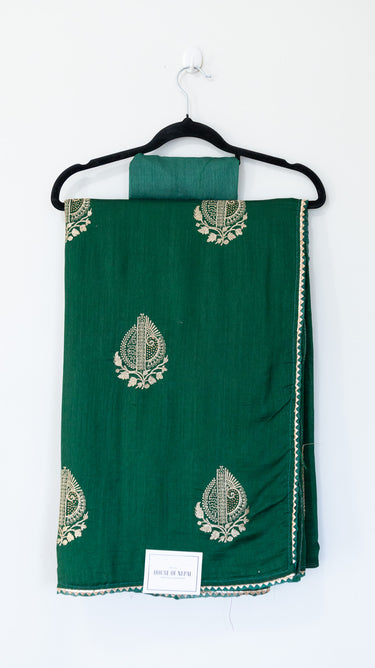 Each saree features a unique assortment of patterns, ensuring that no two pieces are exactly alike. The gold weave remains consistent, while the varied patterns create a distinctive and individualized touch. This makes each saree a special and one-of-a-kind addition to your collection.