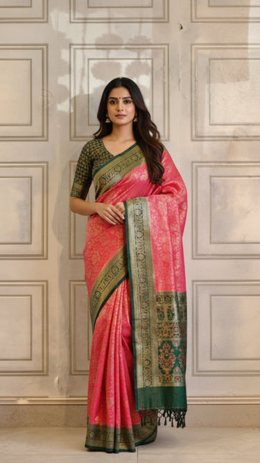 Experience timeless elegance with the Zamawar Silk Saree featuring a striking contrast border. Crafted from smooth silk, this saree drapes beautifully, giving you a graceful look for any occasion. The contrasting border adds a modern twist to the classic design, making it perfect for casual gatherings or festive events. Comfortable to wear and easy to style, this saree brings a touch of tradition with a fresh, contemporary feel.