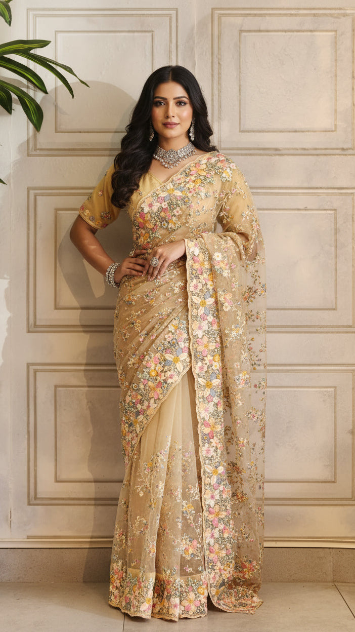 Pair it with statement jewellery and a complementing blouse to complete a look that blends classic tradition with contemporary charm.