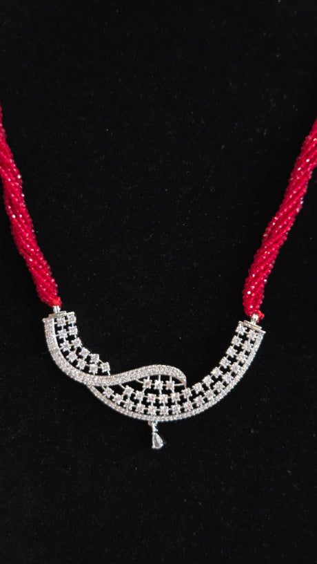 Add a touch of sparkle to your style with our Faux American Diamond Hydro Crystal Mangalsutra. These stunning sets are carefully crafted to bring timeless elegance to your look. Affordable yet luxurious, they're perfect for any occasion, making you shine bright and stand out effortlessly.
