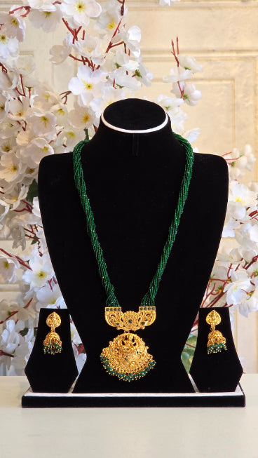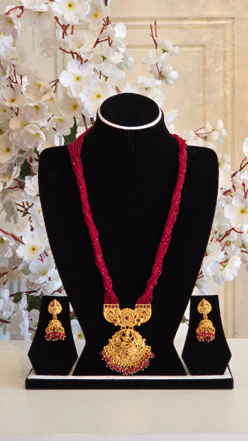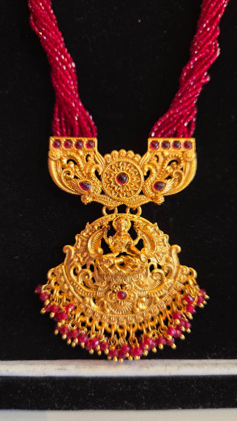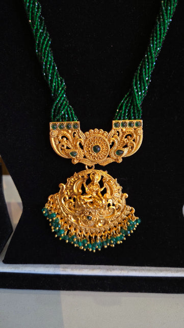 Brass Imitation Hydro Crystal Temple Jewellery With Earrings Laxmi