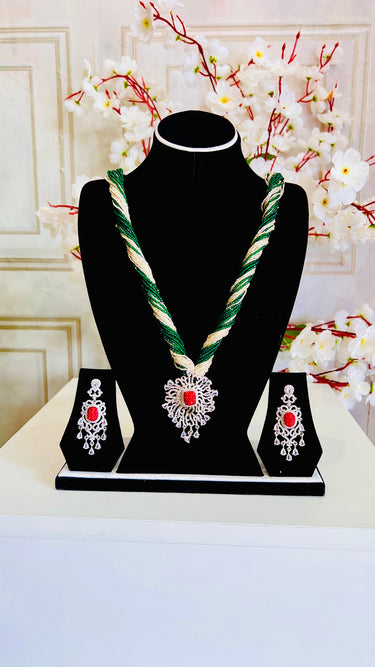Add a touch of sparkle to your style with our Chiffon pote with Hydro Crystal American Diamond Necklace. These stunning sets are carefully crafted to bring timeless elegance to your look. Affordable yet luxurious, they're perfect for any occasion, making you shine bright and stand out effortlessly.