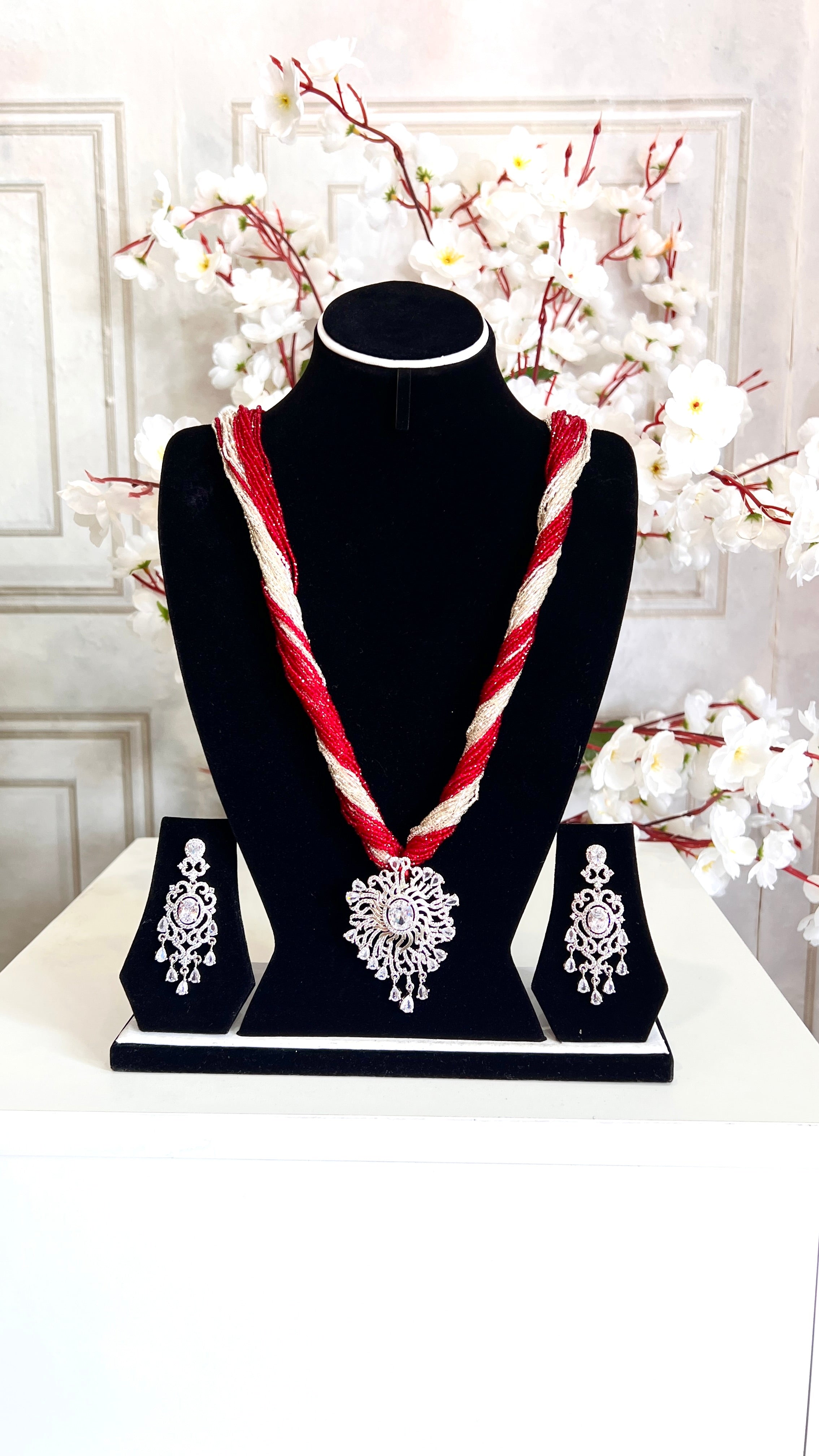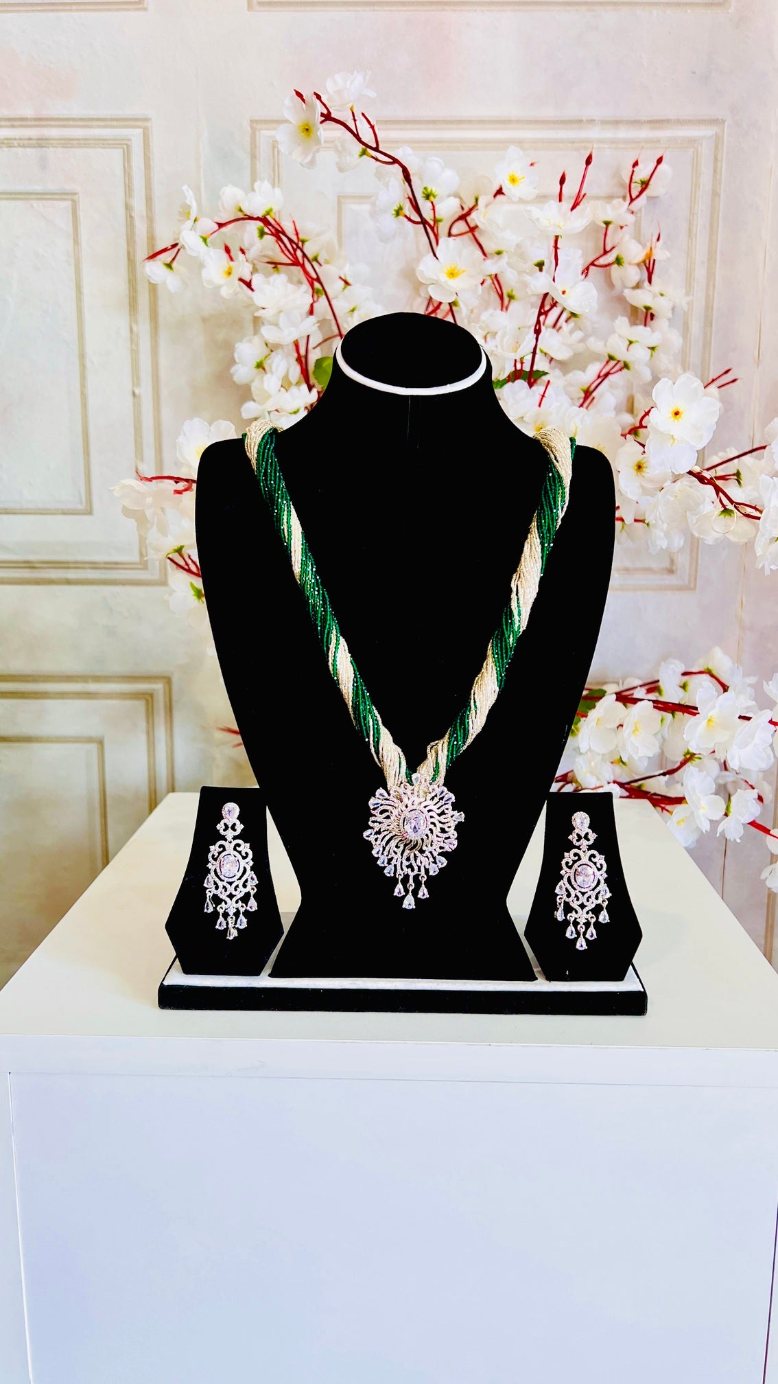 Add a touch of sparkle to your style with our Chiffon pote with Hydro Crystal American Diamond Necklace. These stunning sets are carefully crafted to bring timeless elegance to your look. Affordable yet luxurious, they're perfect for any occasion, making you shine bright and stand out effortlessly.