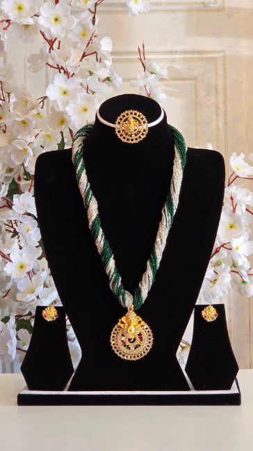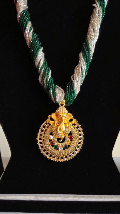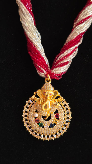 Chiffon pote with Hydro Crystal American Diamond Pendent Vinayaka