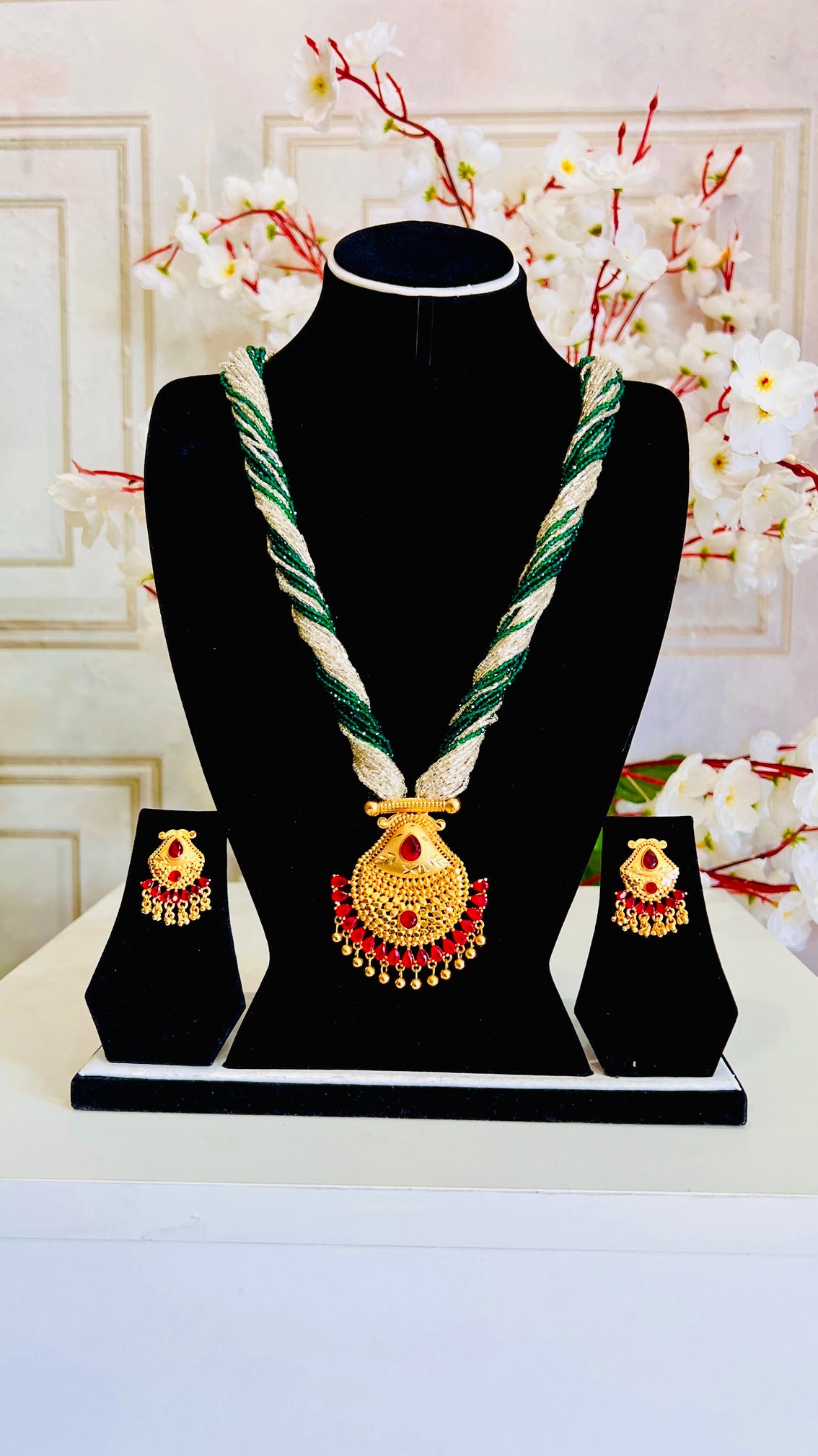 Add a touch of sparkle to your style with our Chiffon pote with Hydro Crystal Gold Plated Necklace. These stunning sets are carefully crafted to bring timeless elegance to your look. Affordable yet luxurious, they're perfect for any occasion, making you shine bright and stand out effortlessly.