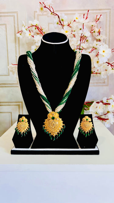 Add a touch of sparkle to your style with our Chiffon pote with Hydro Crystal Gold Plated Necklace. These stunning sets are carefully crafted to bring timeless elegance to your look. Affordable yet luxurious, they're perfect for any occasion, making you shine bright and stand out effortlessly.