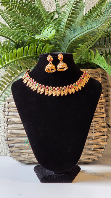 Brass Temple Jewellery Necklace with Earrings Aaradhya