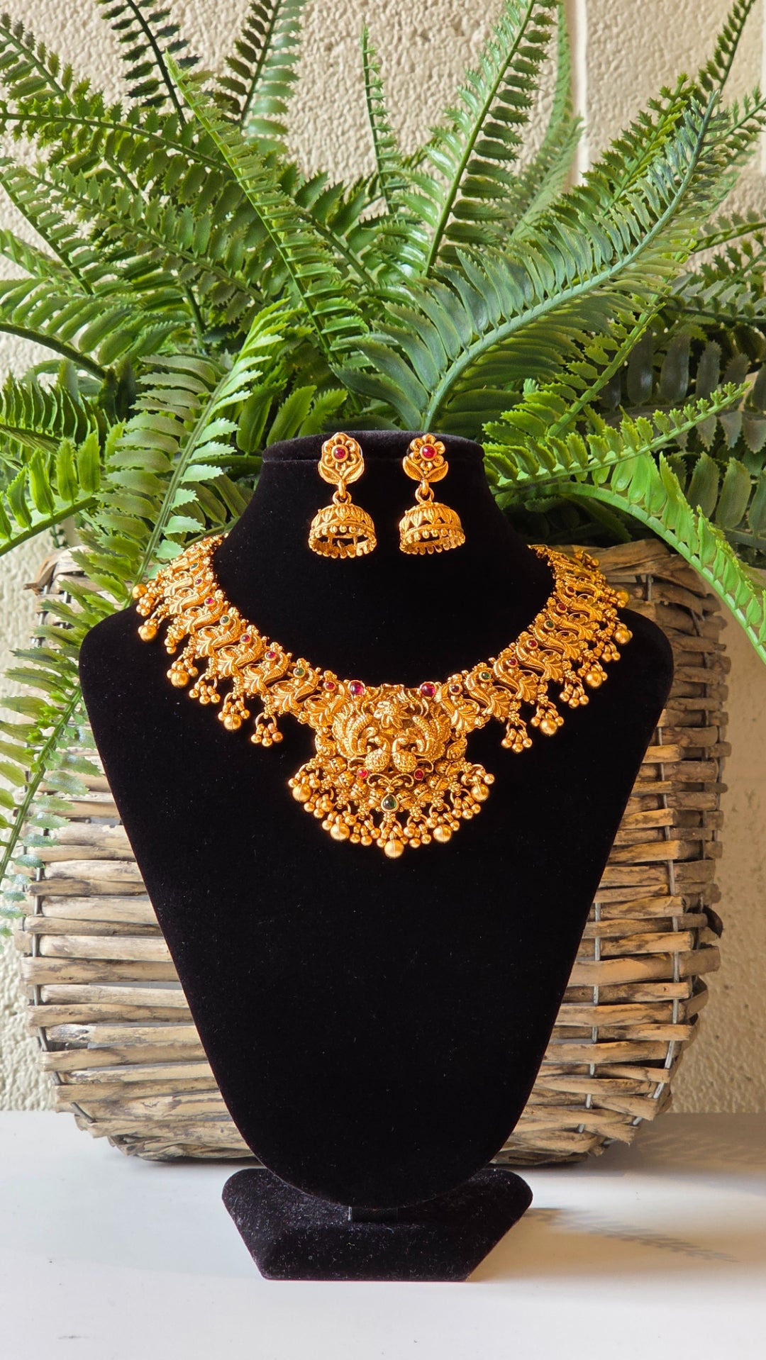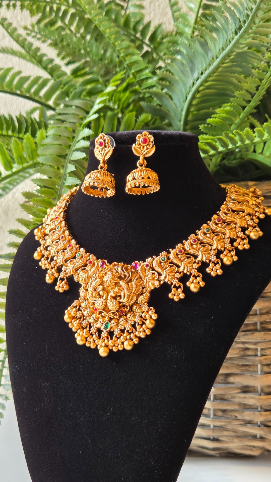 Brass Temple Jewellery Necklace with Earrings Bhavya