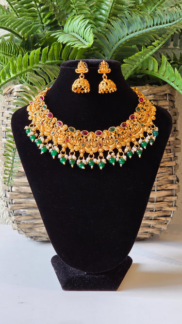 Brass Temple Jewellery Necklace with Earrings Kanaka