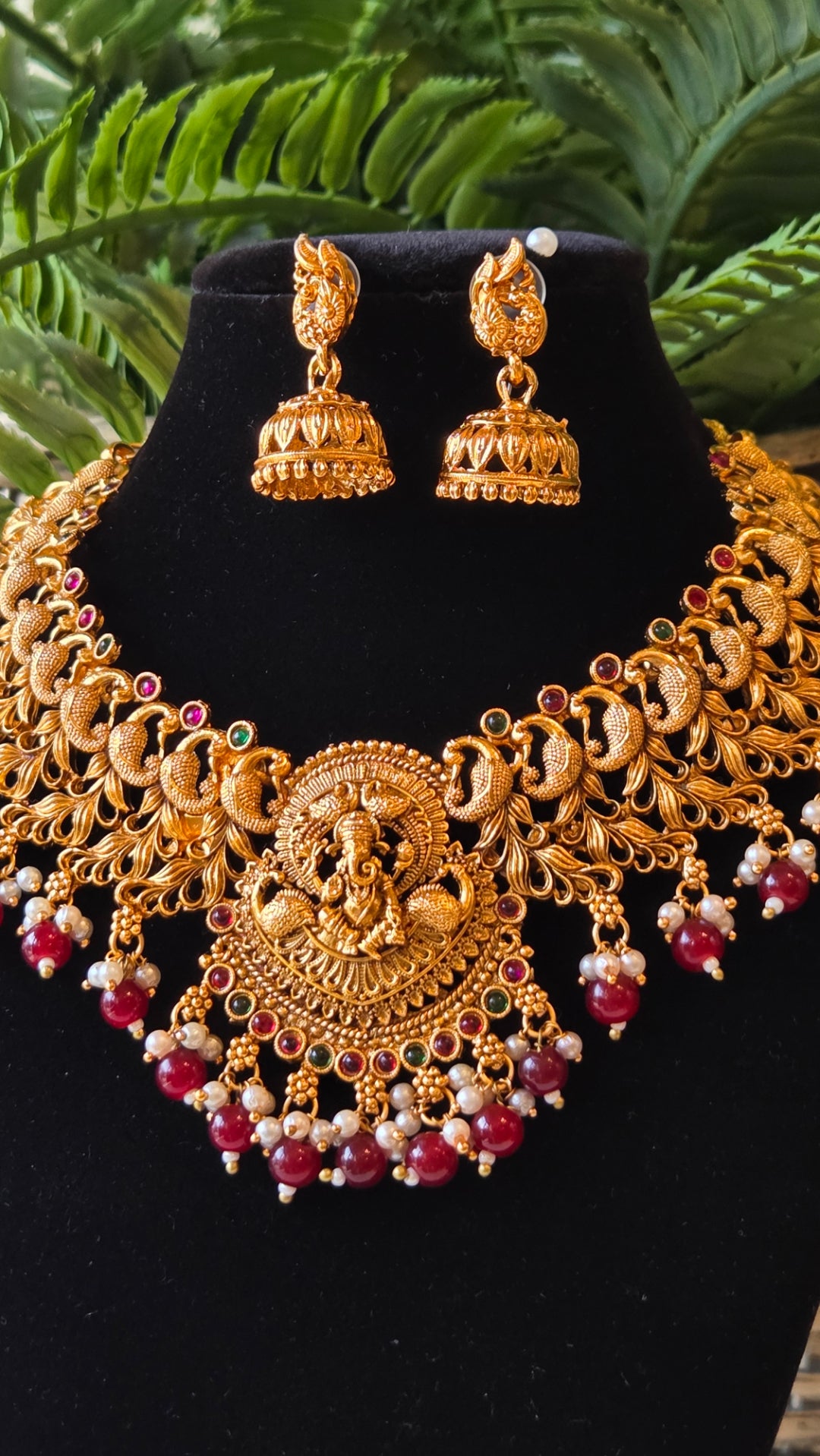 Brass Temple Jewellery Necklace with Earrings Mangala