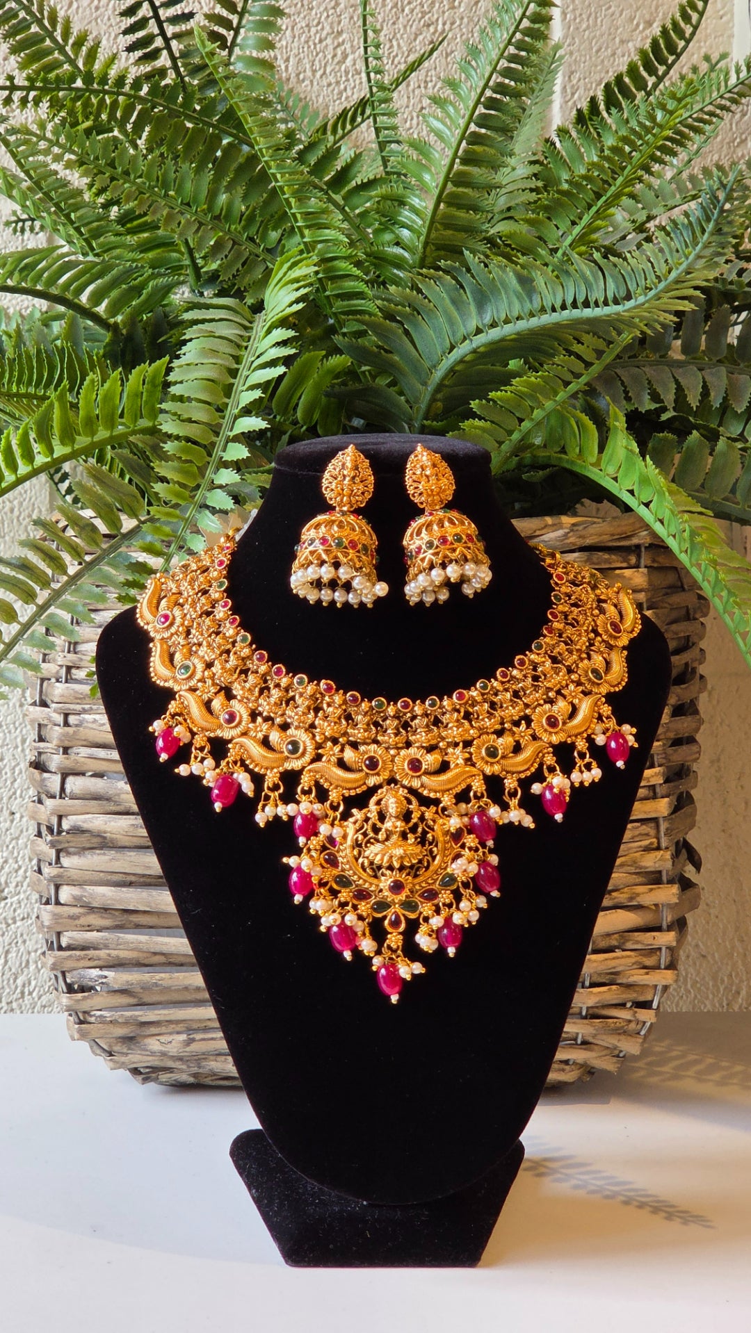 Brass Temple Jewellery Necklace with Earrings Nritya