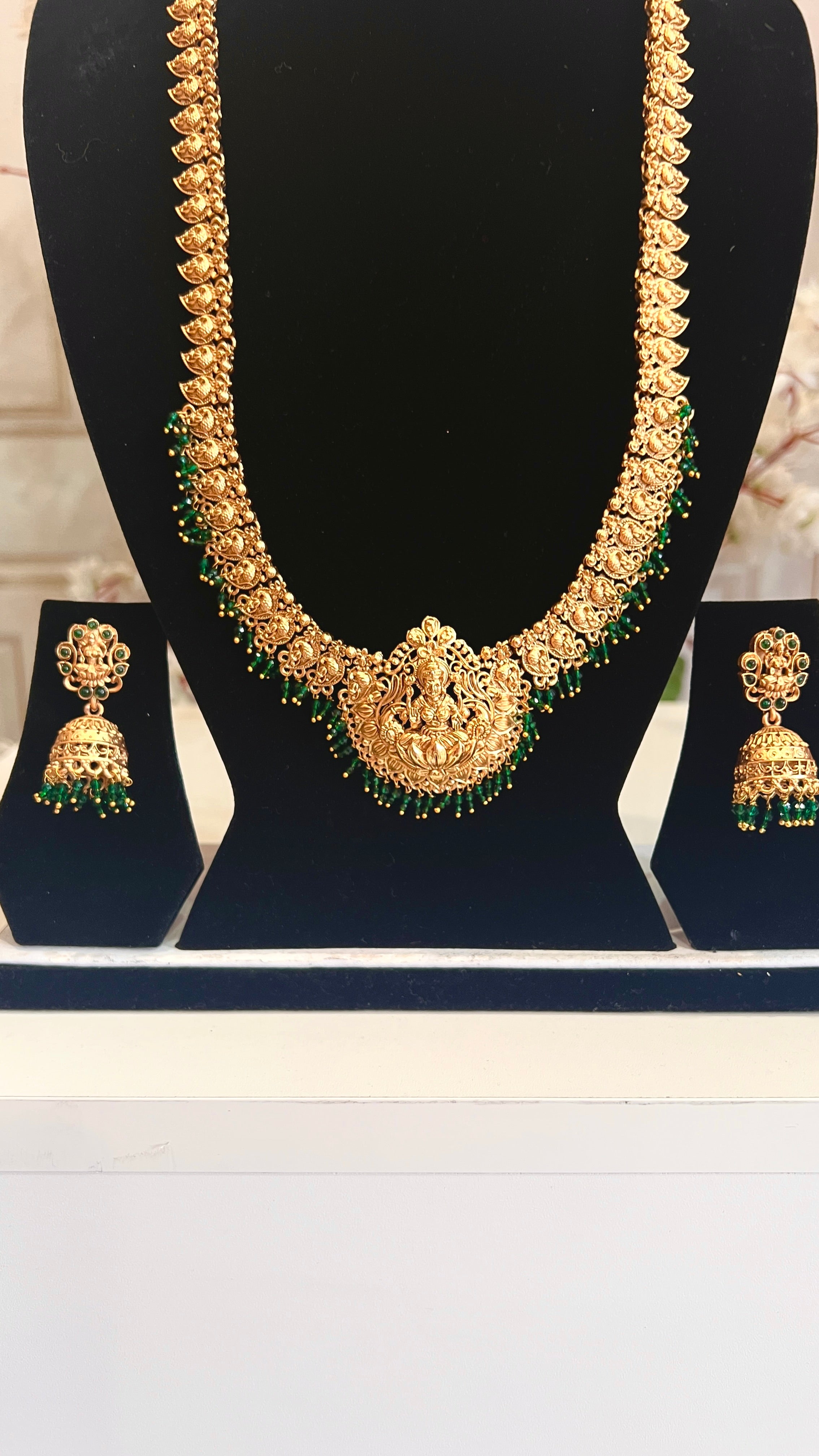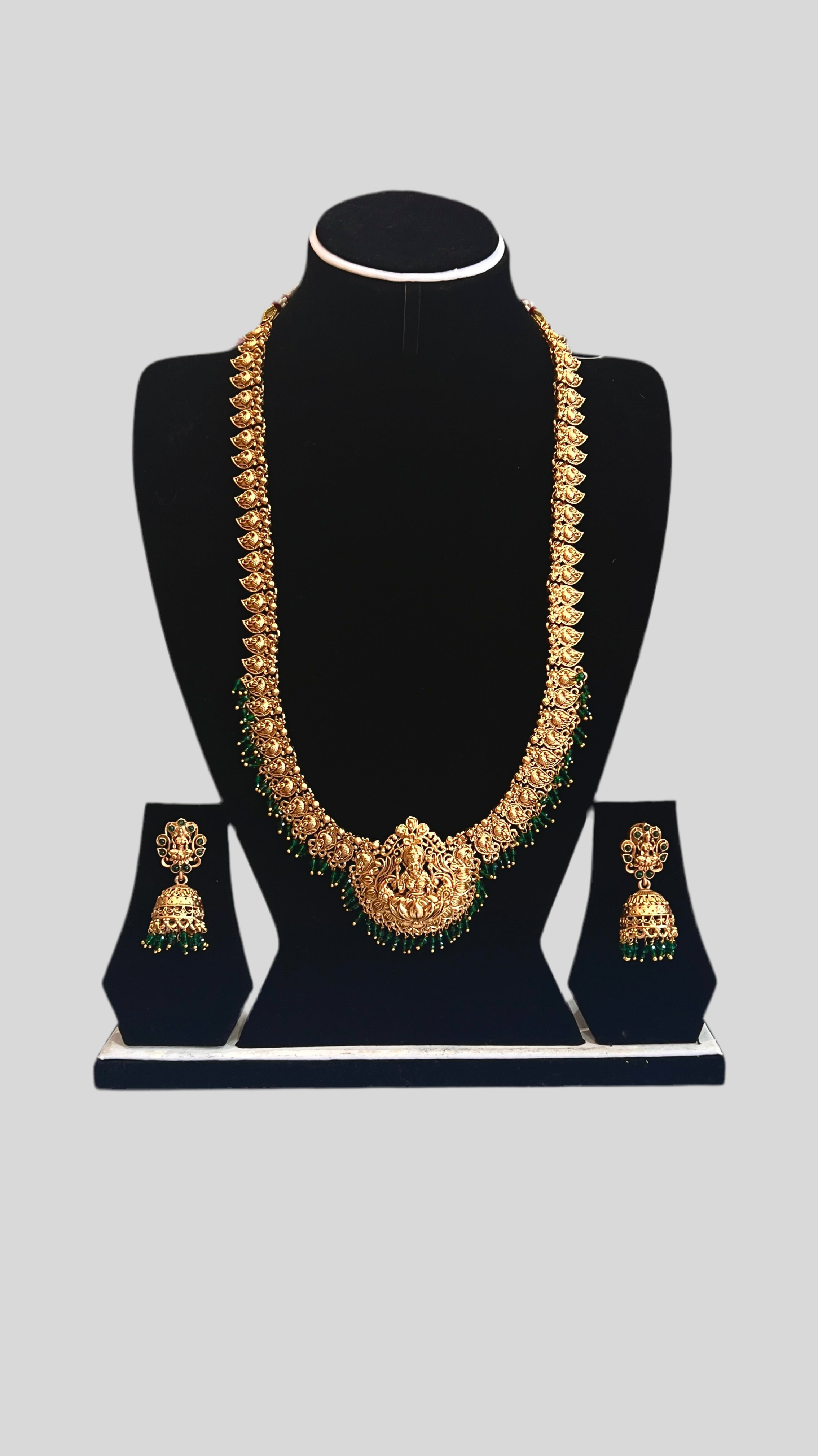 Brass Temple Pearl Long Necklace with Earrings Divya