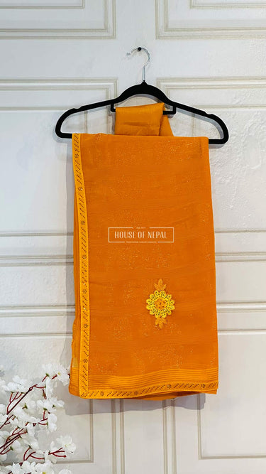 Light Georgette Saree with Flower Threadwork, Foil Lines and Stone Border Savitri
