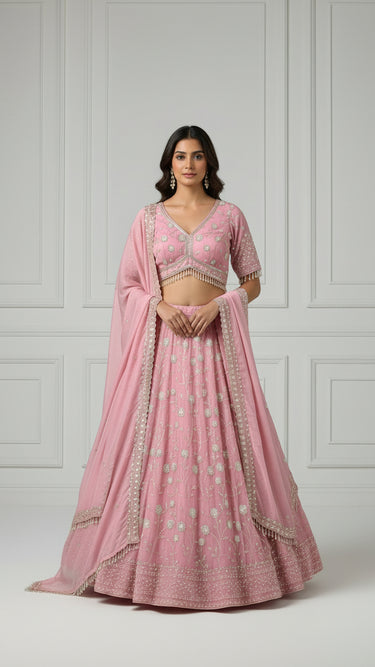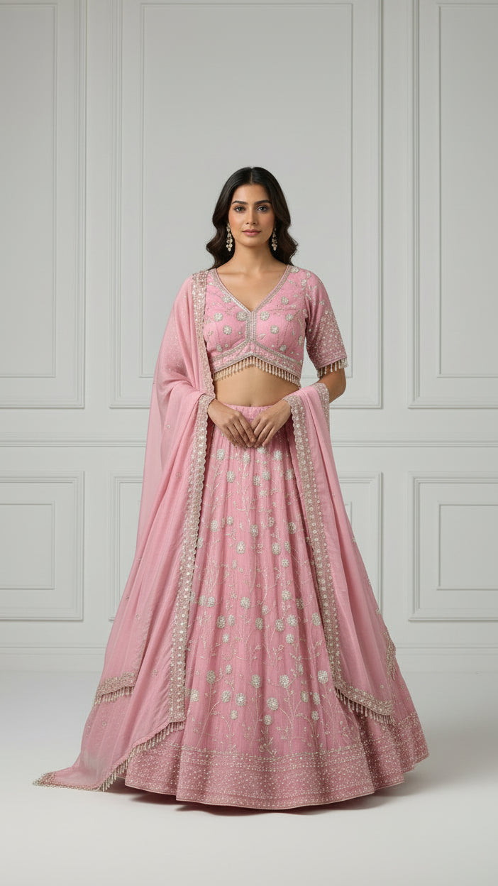 Pink Hand Embroidered Elegance Lehenga Set