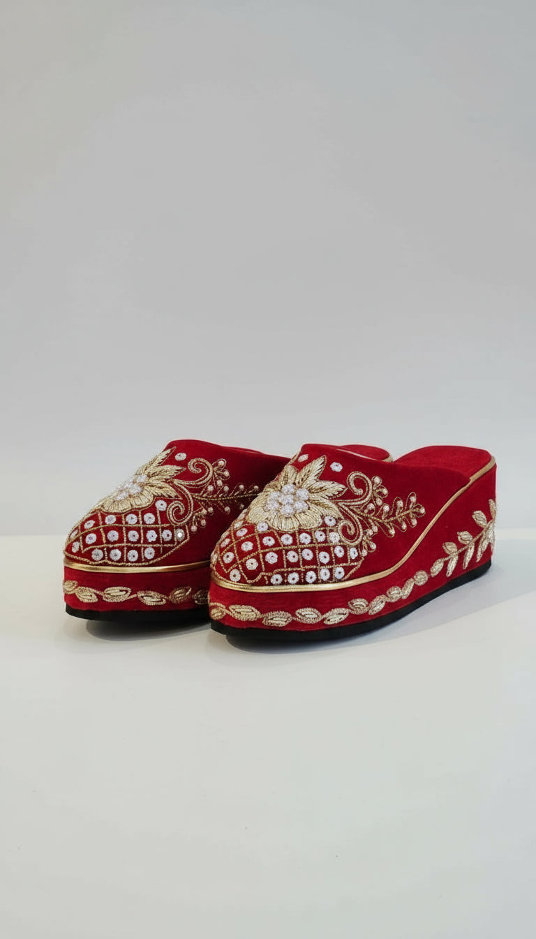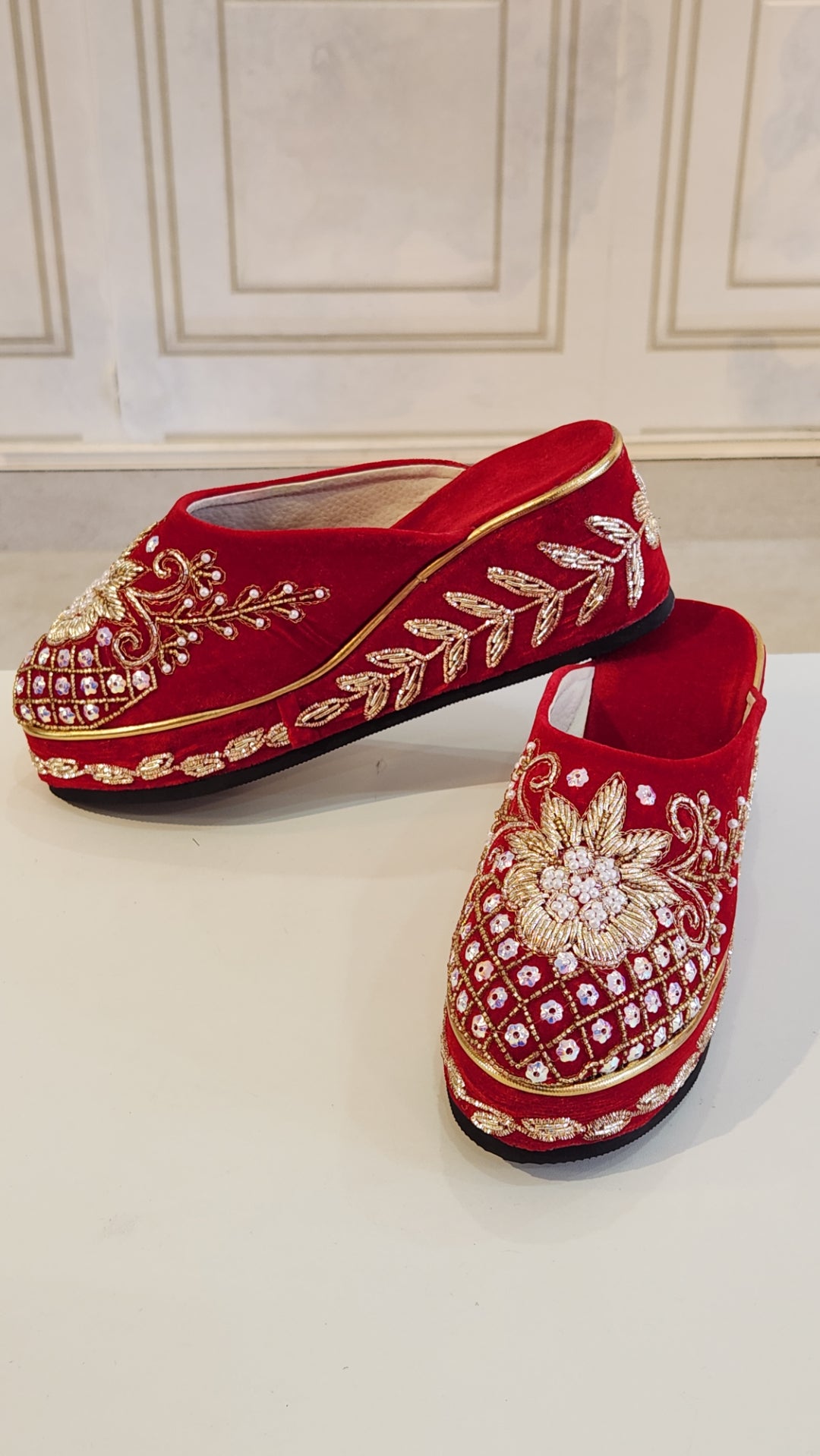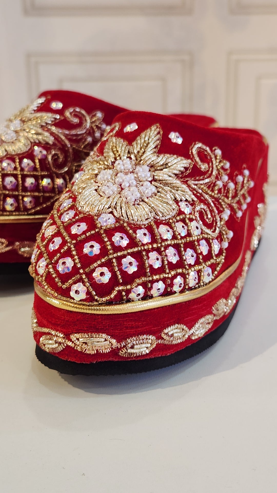 Step into elegance with our Velvet Bridal Shoes, designed to make your special day unforgettable. Crafted from luxurious velvet, these shoes feature exquisite hand-embroidered details that add a touch of personalized artistry and sophistication. The comfortable wedge heels offer both style and stability, ensuring you can dance the night away with ease. Perfectly combining opulence and practicality, these bridal shoes are the ideal choice for a bride seeking both beauty and comfort on her wedding day.