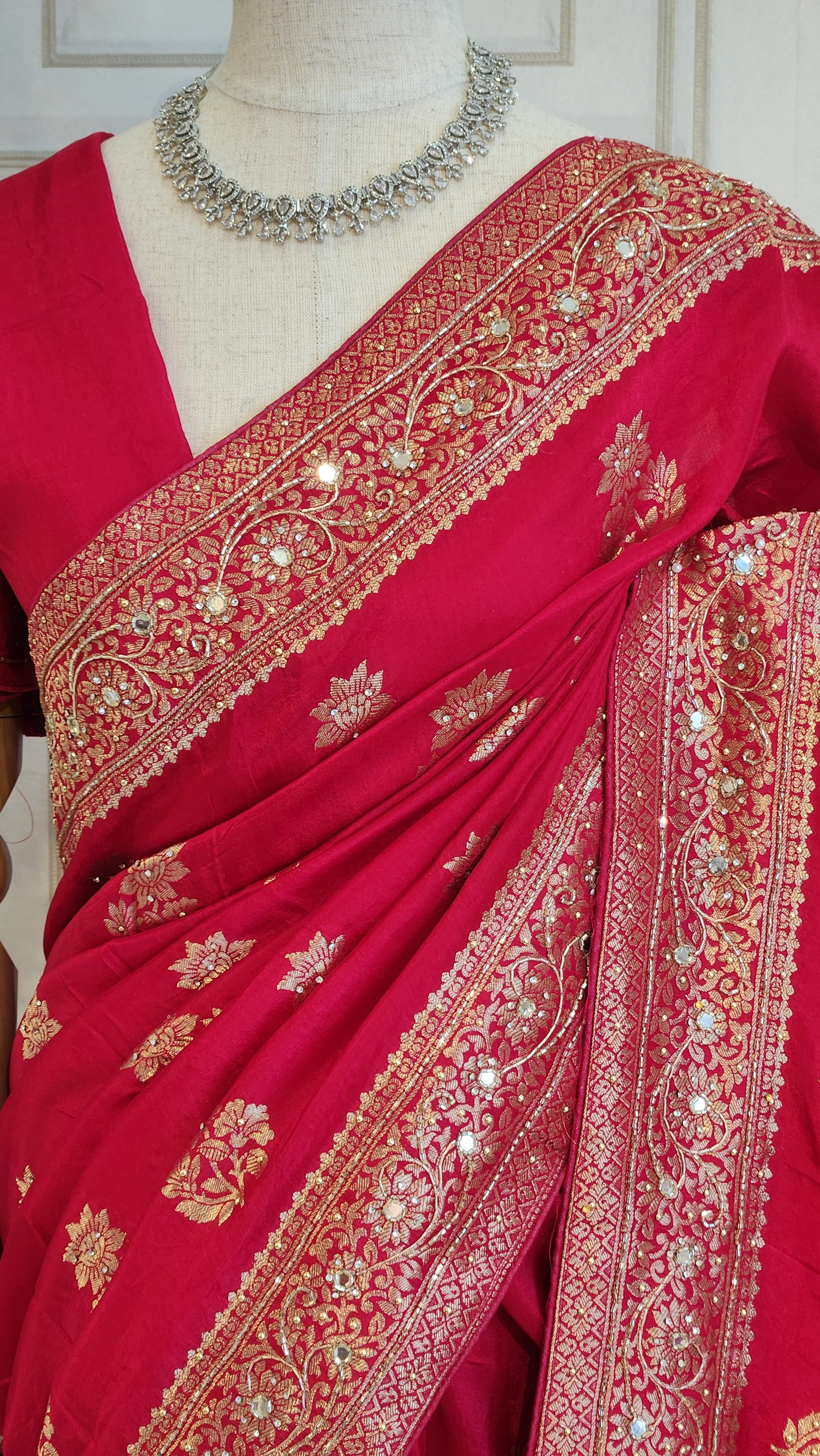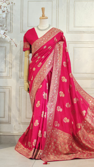 Whether worn at weddings, festive gatherings, or special events, this saree radiates elegance and sophistication, making it a cherished addition to any ethnic wardrobe.