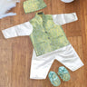 Celebrate your little one's first taste of solid food with this charming brocade Pasni dress. Crafted from luxuriously soft fabric with an inner cotton lining, this set ensures your baby feels comfortable throughout the weaning ceremony.